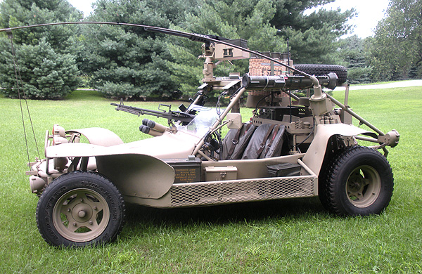 Now here is a different one. I bought this photo on ebay. It is a real FAV that has been modified a lot! The side baskets had custom made covers installed. The upper rollbar had side extensions added to prevent roll-overs, the roof was lifted, supports were added to the front shock towers and a TOW missile launcher was installed where the #2 seat used to be.